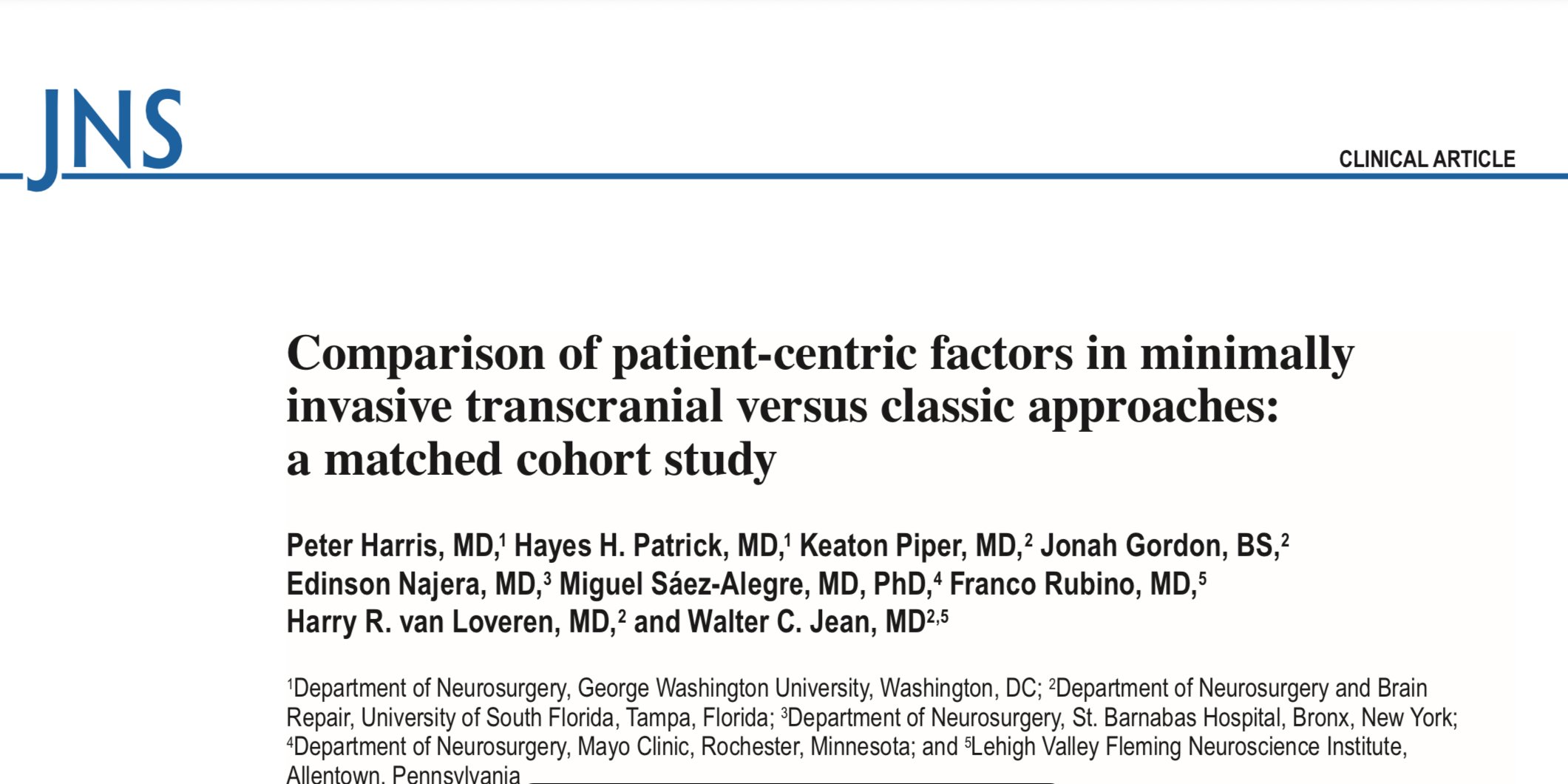 March 4, 2026 Walter Jean Journal of Neurosurgery March 4, 2026 Walter Jean Evidence that minimally invasive approach enhances the patient recovery process. Walter Jean